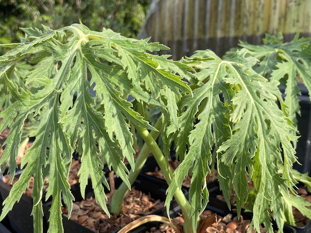 Ipomoea quamoclit, Cypress vine, reseeding annual - mostly foliage but a few flowers